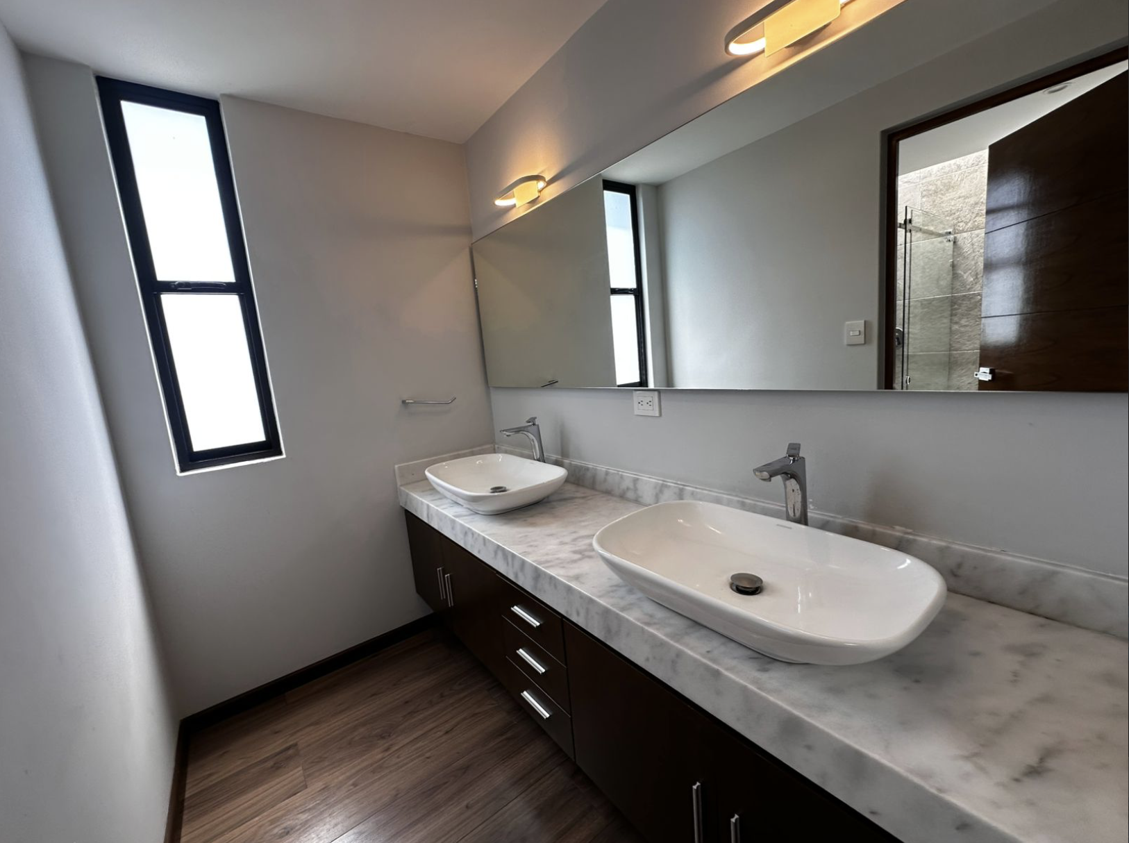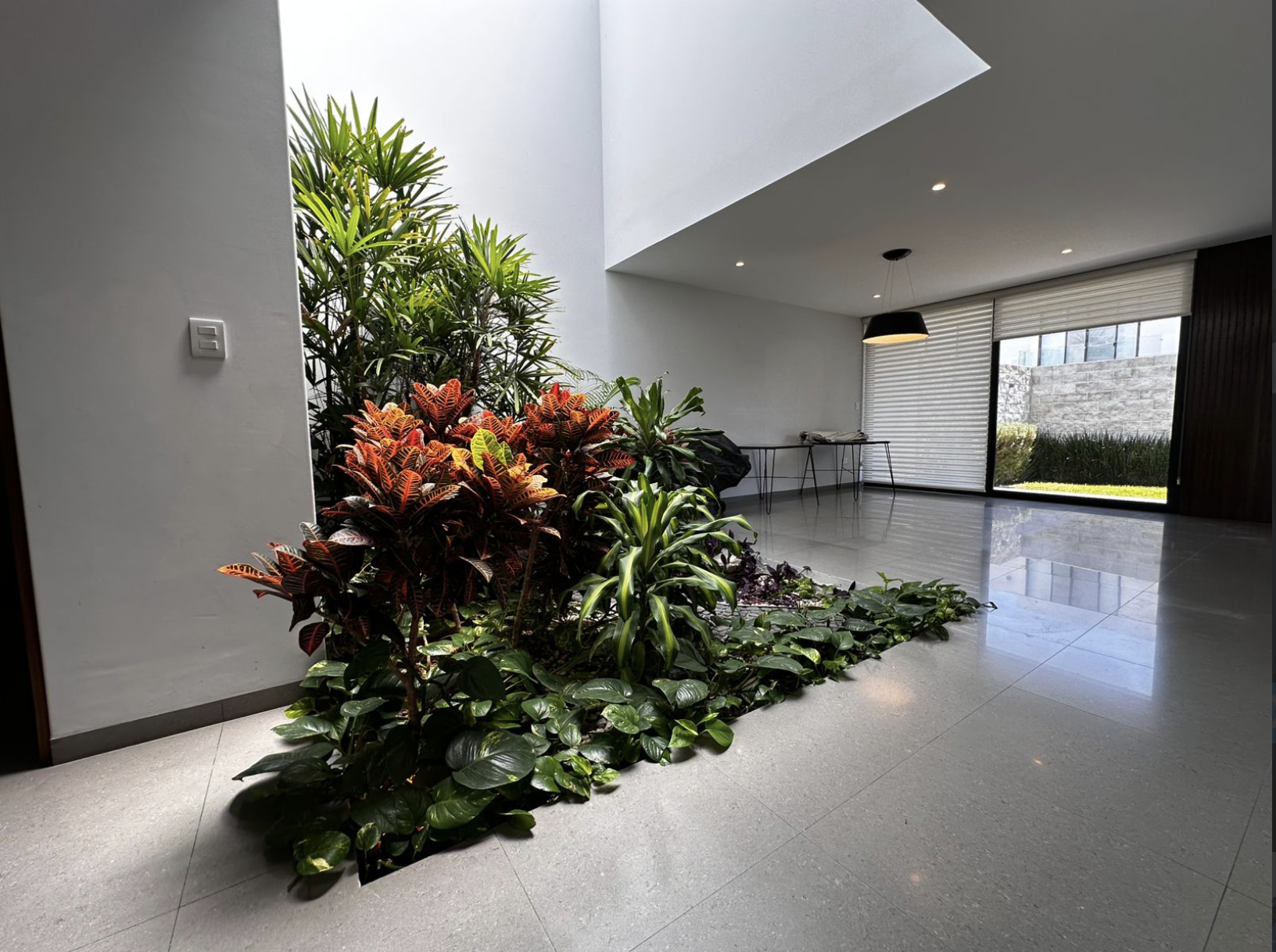 La principal con amplio vestidor y doble lavabo, 5 baños, Cancel de cristal templado 9 mm, Cuarto de lavado, 2 roof garden (uno trasero techado y otro al frente), Bodega amplia, Cisterna de 10,500 litros, Cocina con isla y con alacena independiente, cuenta con espacio para lavavajillas, Triturador de alimentos Jardín ornamental interior, exterior y frontal, Sala TV, Terraza amplia en recámara principal con vista a los volcanes, Piso interceramic premium, Alarma, Circuito de TV, Riego subterráneo con programador, Encimera de cuarzo, Cortinas o persianas en toda la casa, Clóset de blancos, Doble altura , Cerradura inteligente , Jardín trasero de 70 m2, Pasillo lateral con acceso independiente , Iluminación led en toda la casa, Cochera muy amplia para dos vehículos grandes.