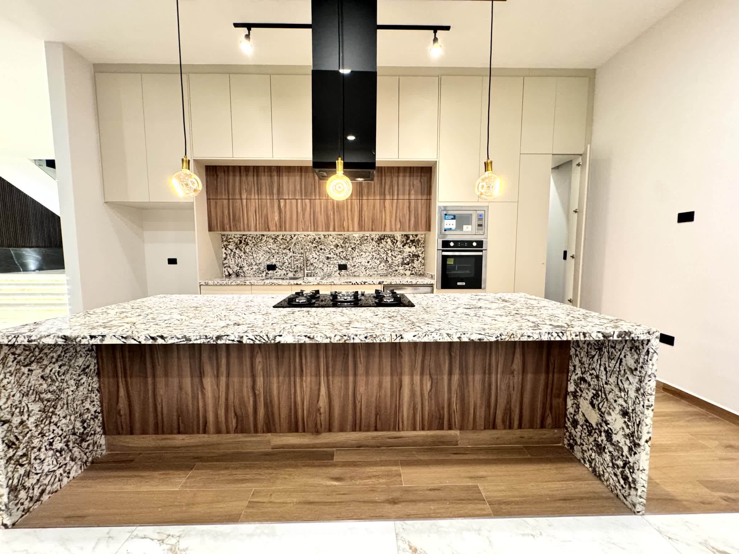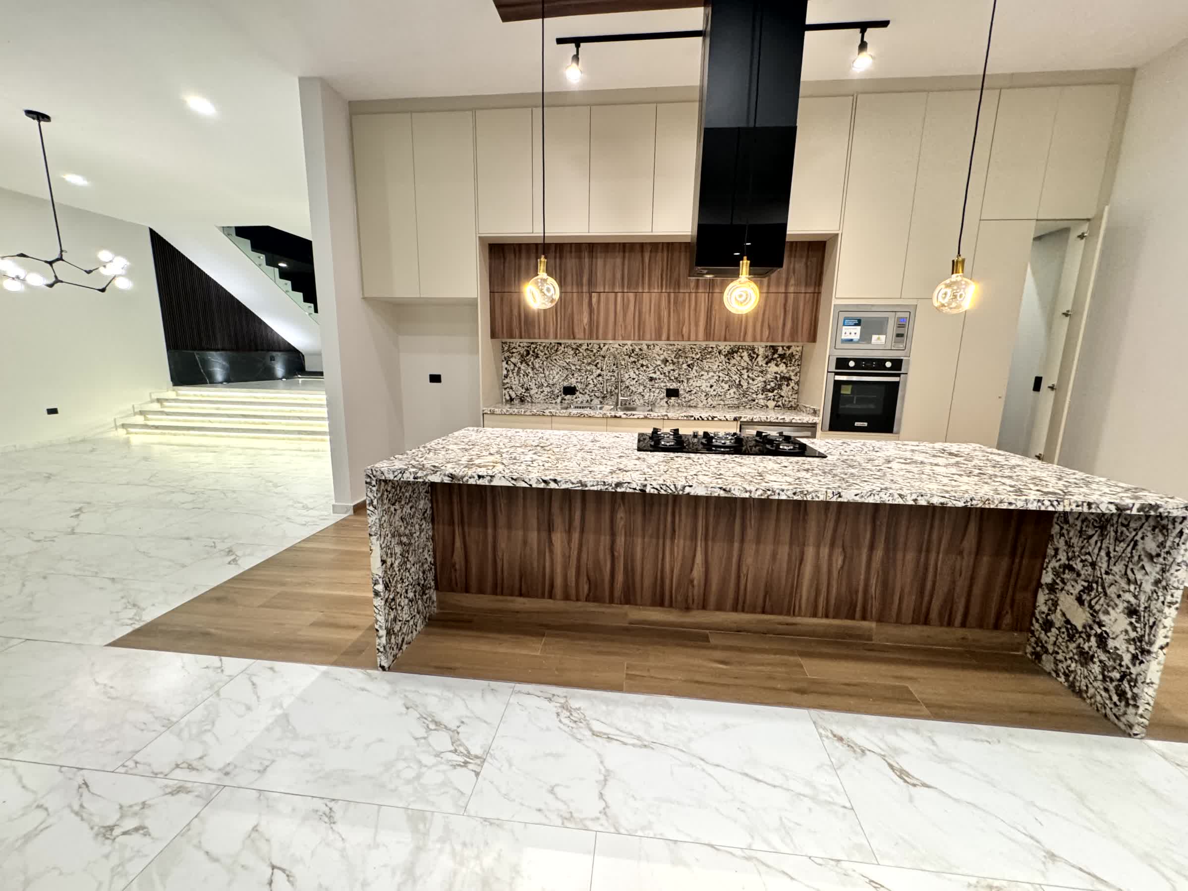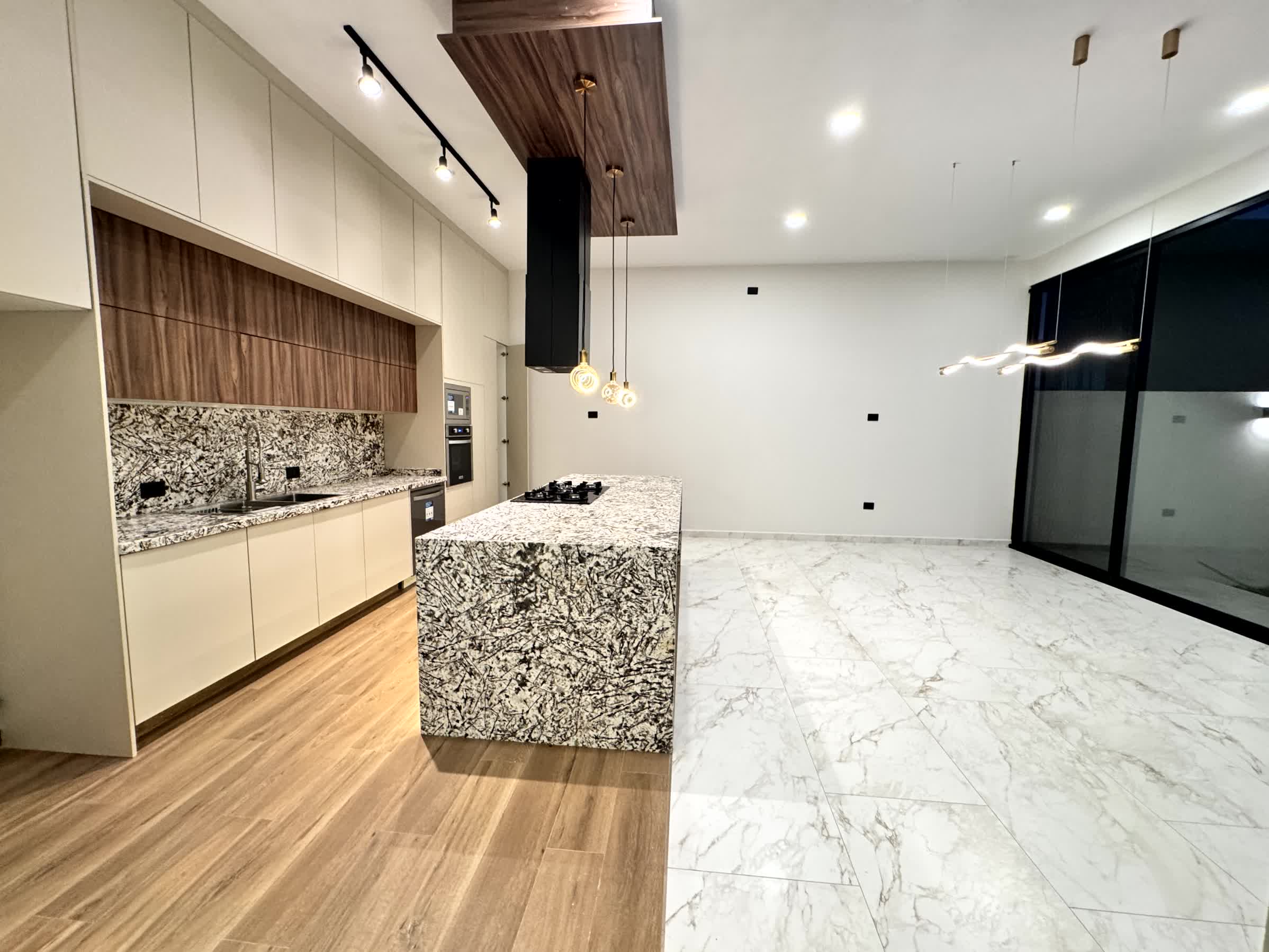 Planta Baja con altura de 3.30 mts. Cocina al alto brillo equipada con torre de hornos io Mabe, lavavajillas 12 servicios io Mabe. Encimeras de cuarzo delicatus. Acceso principal con chapa inteligente; video portero inteligente apagadores inteligentes para luces de exterior control WiFi-Alexa. Preparación para: Circuito cerrado, calentador solar, suavizador, celdas fotovoltaicas, 5 mini splits. Servicio de gas natural. Cisterna 10,000 lt. Espejo de agua exterior de 8 m2 con fuente de gran esfera de mármol de 1 ton.