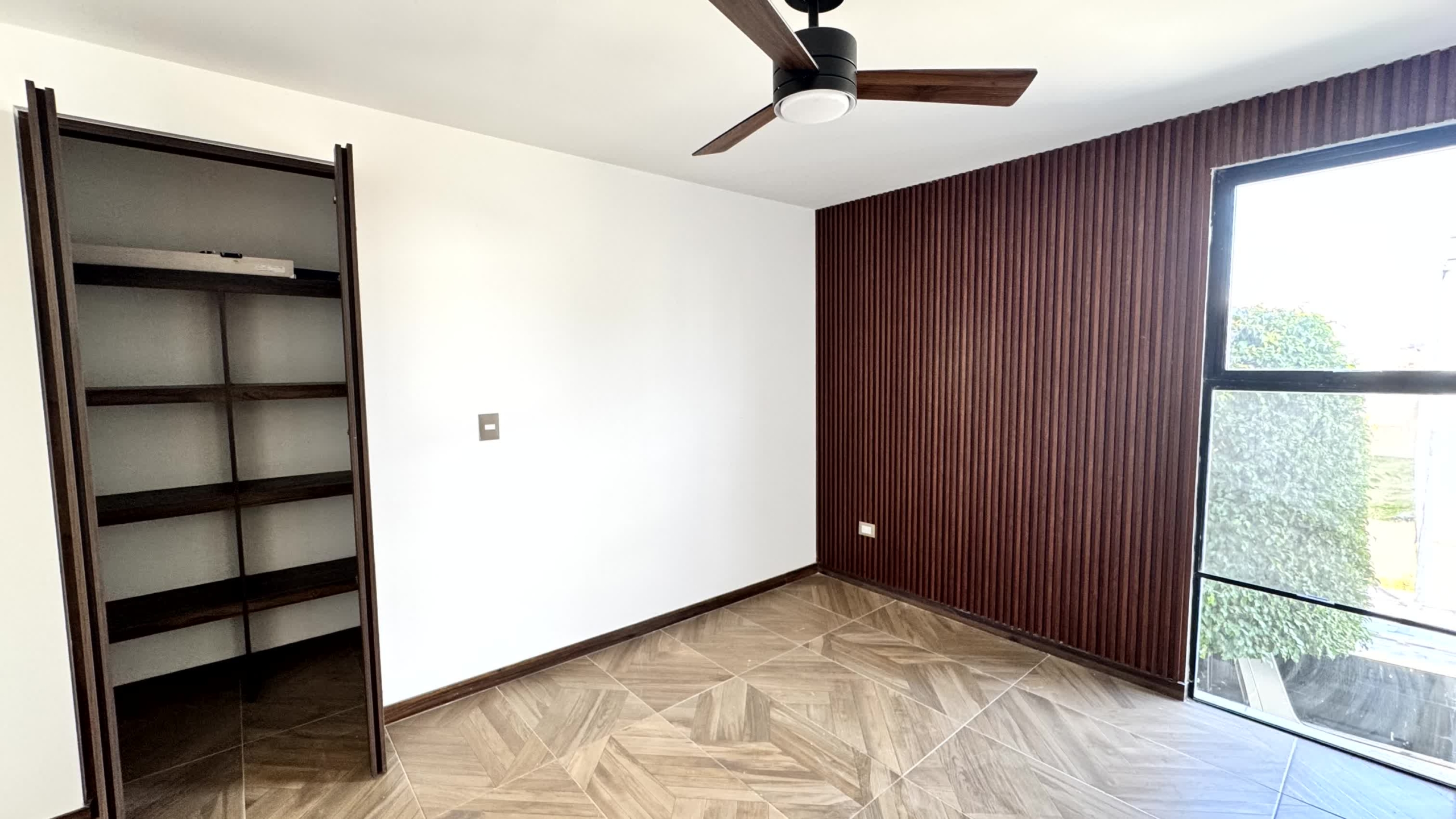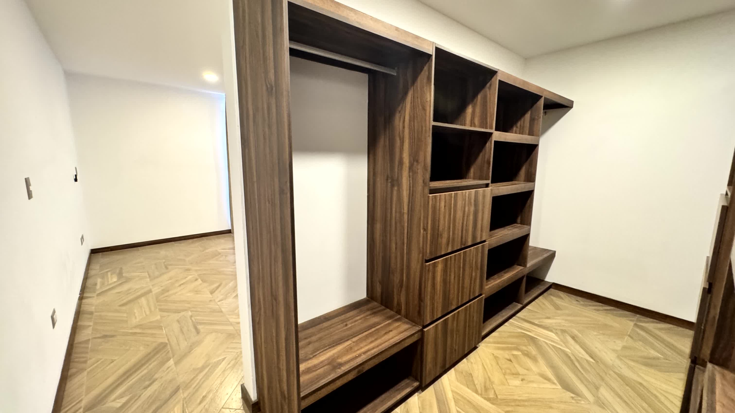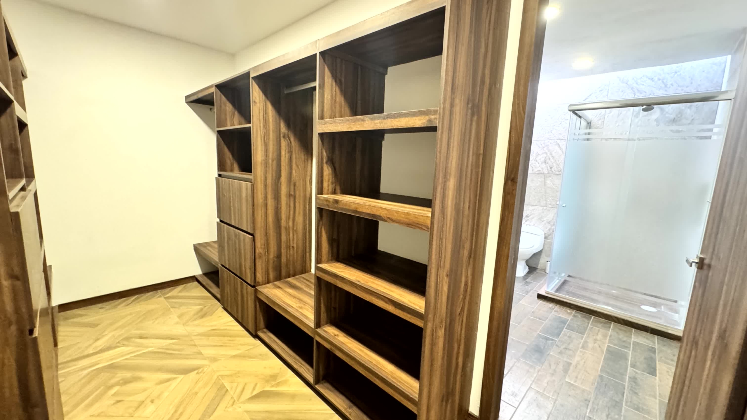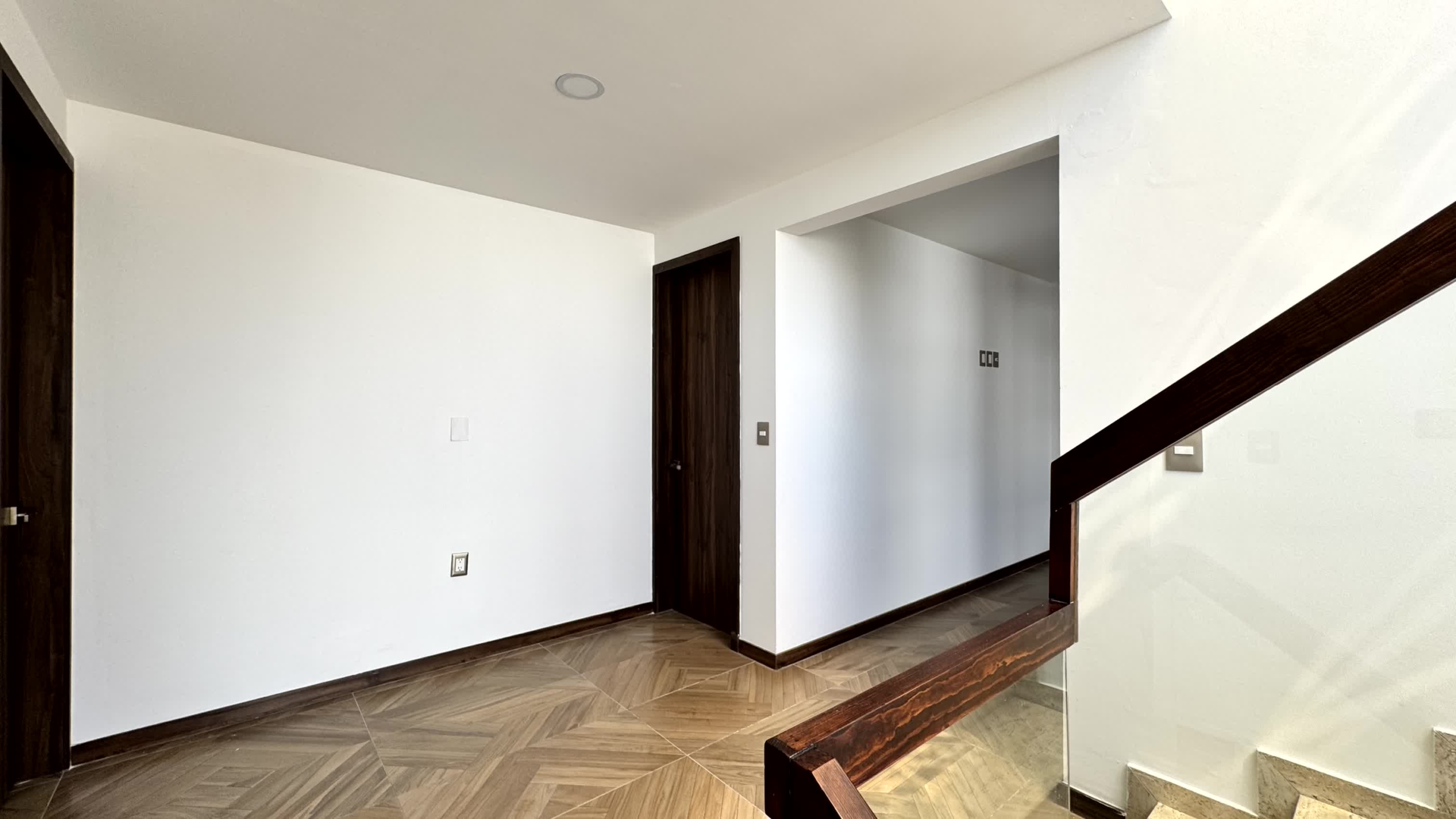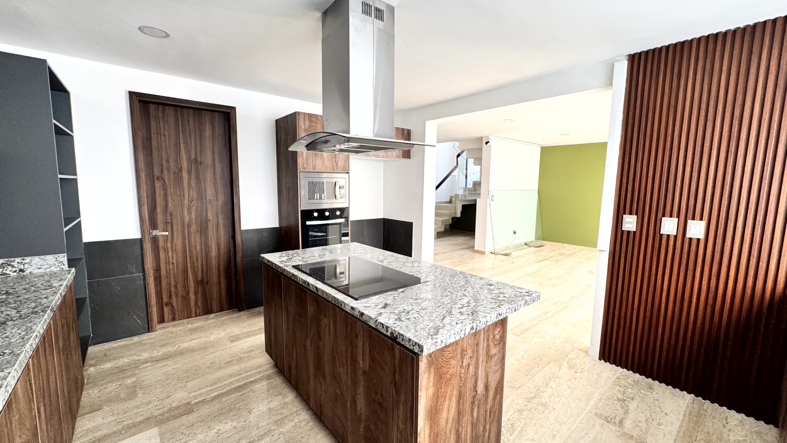 Cochera para 2 autos, recibidor, medio baño de visitas, sala, comedor, estudio, cocina, alacena, jardín, sala de tv, 3 recamaras cada una con baño, la recámara principal con vestidor, Family room y roof garden, área de servicio con baño.