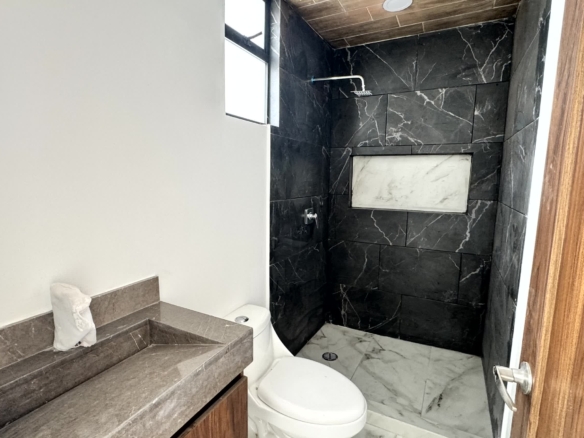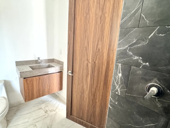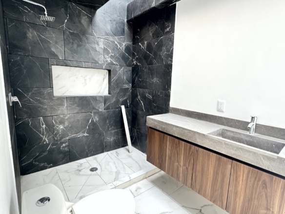 1er Nivel: Recámara principal con vestidor y baño con tina, 2 recámaras secundarias con clóset y baño.